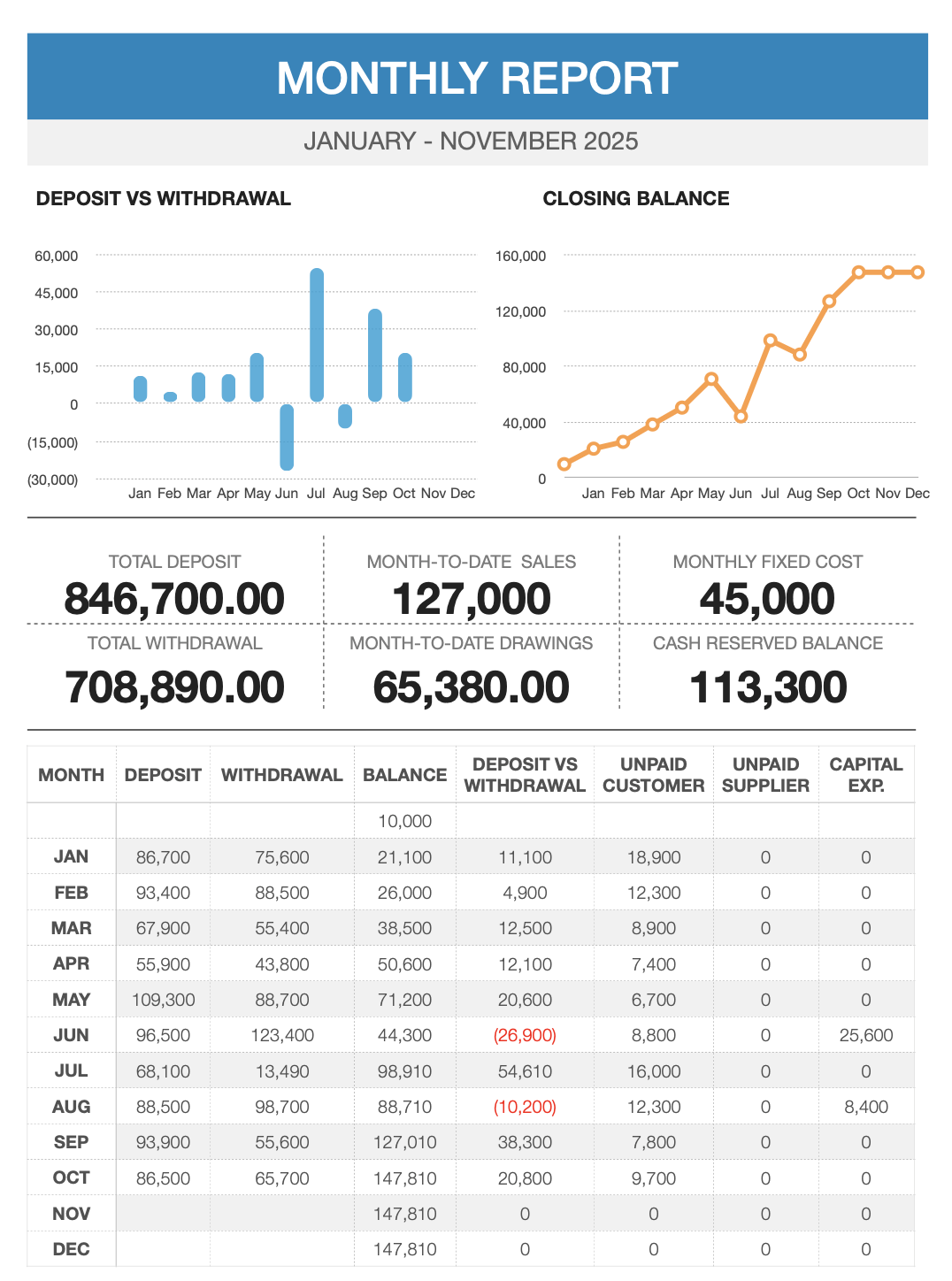 - Pantau cash flow bulanan, bukan hanya untung rugi.